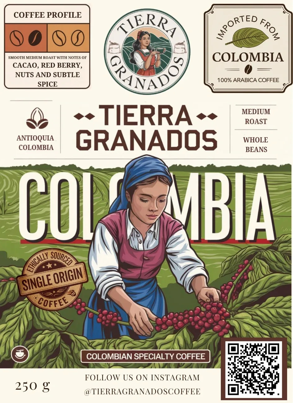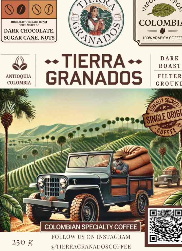 Welcome to Tierra Granados Colombian Coffee where every bean tells a story of love, heritage, and purpose. Our specialty coffee is handpicked from the highlands of Colombia and ethically roasted to bring bold flavor and lasting impact. From supporting schools to sharing financial literacy, we believe great coffee can change lives. Join us on this journey from the mountains of Medellín to cafés and homes around the world!